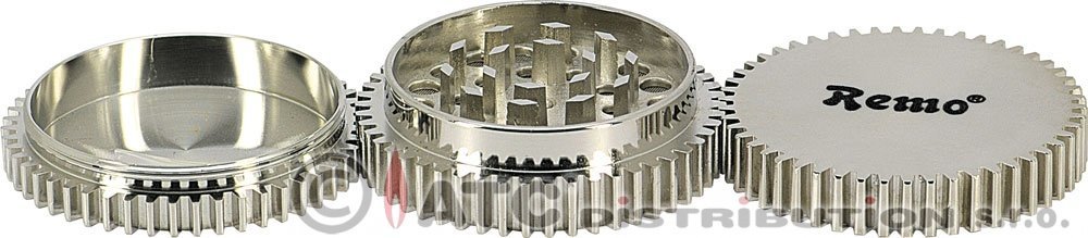 Drvič na tabak Ozubené kolokovový, 3 časti Kovová drvička tabaku v tvare ozubené kolo - Kovový drvič v tvare OZUBENÉ KOLO sa skladá ze troch častí a priemer je 47 mm. Spodná časť je zásobník na rozdrtený tabak + dva vrchné diely. Po rozdrtení za pomoci sitka dopravíme rozdrtený materiál do spodnej časti do zásobníka. Použivatelia hodnotia veľmi kladne tuto drvičku i vďaka svojej kvalite za príjemnou cenu a nevšedným dizajnom sa tento drvič radí medzi lepšie kovové drvičky tabaku.