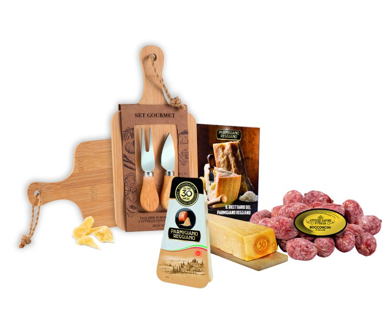 "Golden Collection" je ideálnou voľbou pre tých, ktorí chcú obdarovať svojich blízkych či obchodných partnerov výnimočným darčekom, ktorý zaujme nielen svojim obsahom, ale aj elegantným zlatým balením s doskou a mini nožmi na syry. Tento kôš nie je len o chutiach, ale aj o štýle a kvalite, ktoré premenia každý okamih na slávnostnú udalosť plnú radosti a vytváranie krásnych spomienok spojených s talianskou kuchyňou.
