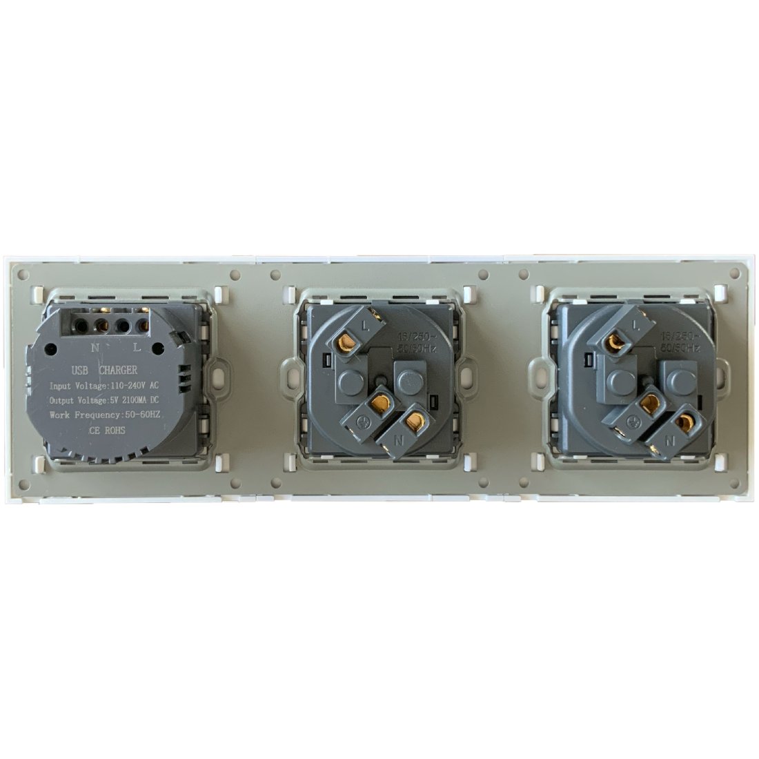 Sklenený rámik s dvoma plastovými zásuvkami a dvoma USB vstupmi - klasické