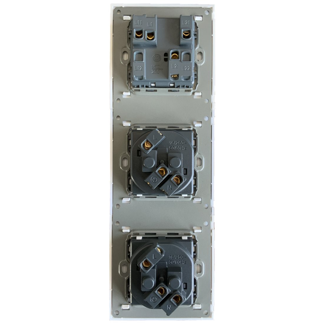 Sklenený rámik s plastovým vypínačom a dvomi zásuvkami - klasické