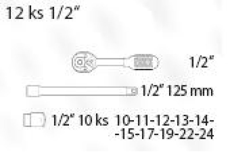 12 ks gola sada s ráčnou 1/2 v přehledném organizéru. Všechny části jsou vyrobeny z vysoce kvalitní chrom-vanadiové oceli, ráčny mají jemné dělení 72 zubů s přepínací páčkou a uvolňovacím tlačítkem, tělo ráčny z CrV oceli, zubový mechanismus z S2 oceli. Ergonomicky tvarovaná rukojeť se zdravotně nezávadnou gumou. 10 let záruka. Pro použití v průmyslu a servisech.