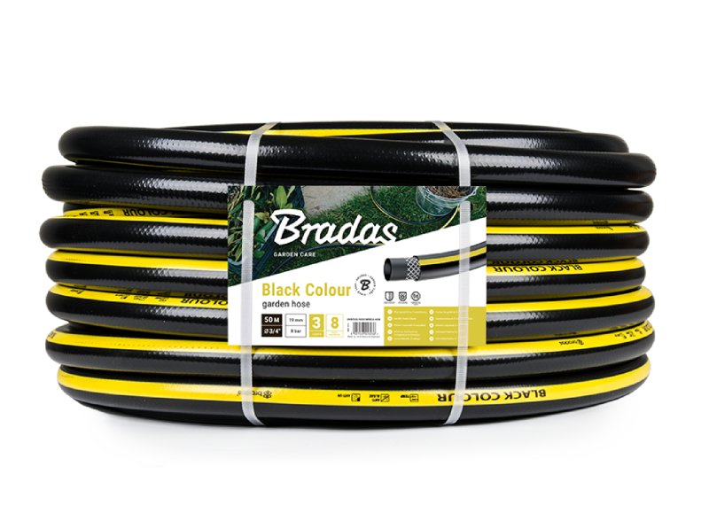 3-vrstvá zahradní hadice vyztužená, vyrobená z měkčeného PVC s vyšší hmotností a pevností I vrstva - vnitřní, vyrobené z černého PVC, odolná proti UV záření a řasy odolné II vrstva - pletená syntetická vlákna III vrstva - vnější vrstva z měkčeného PVC v černé barvě s dvěma žlutými pruhyTlak - max.8 barZáruka - 8 let.