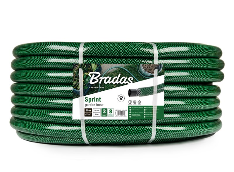 Hadica SPRINT - 3 vrstvová, vystužená záhradná hadica z mäkčeného PVC. I vrstva - čierna PVC Vnútorná vrstva proti UV žiareniu, proti riasam II vrstva - pletené syntetické vlákna III vrstva - vonkajšia vrstva, transparentná zelená vyrobená z mäkčeného PVCTlak - max .8 barZáruka 8 rokov.