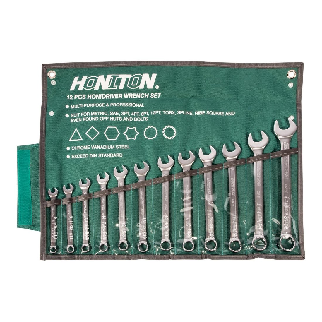 HONITON Sada očkoplochých klíčů vyhnutých 12 dílů HONIDRIVER | 8-22 mm, textilní obal