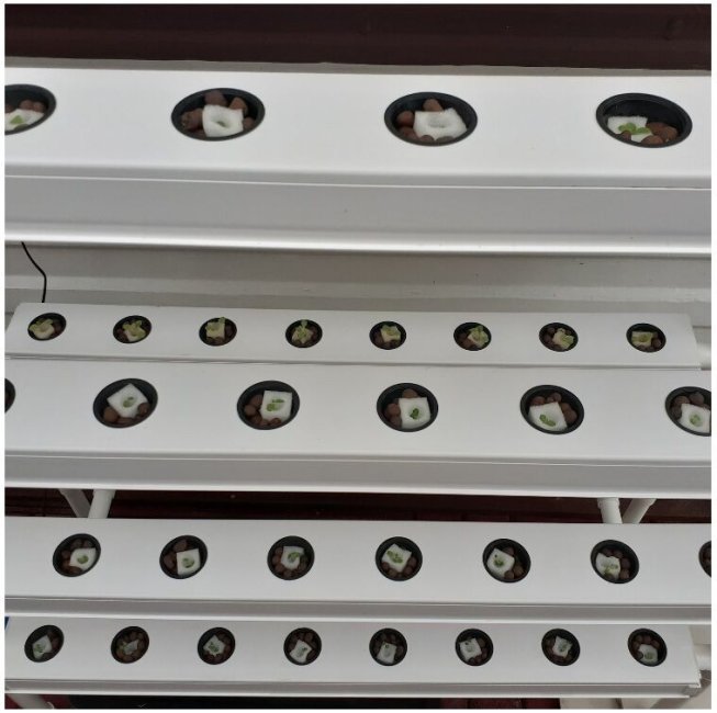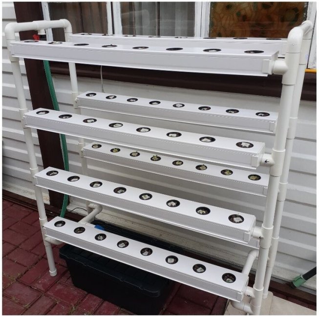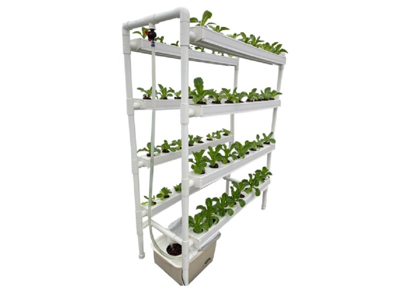 Kompletný hydroponický systém, stojan so 64 otvormi na pestovanie rastlín.