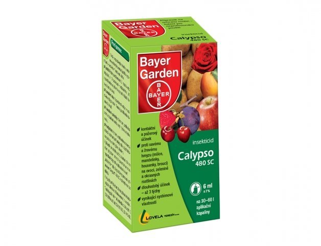 Postřik Calypso 480SC 6mlPostřikový insekticidní přípravek ve formě suspenzního koncentrátu pro ředění vodou k ochraně jabloní, třešní, višní, slivoní a brambor proti žravým škůdcům - použití :Brambory - Mandelinka bramborová - 1-1,5 ml / 3-5 l / 100 m2, OL=21 dní, duben-srpe
