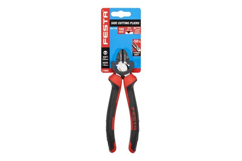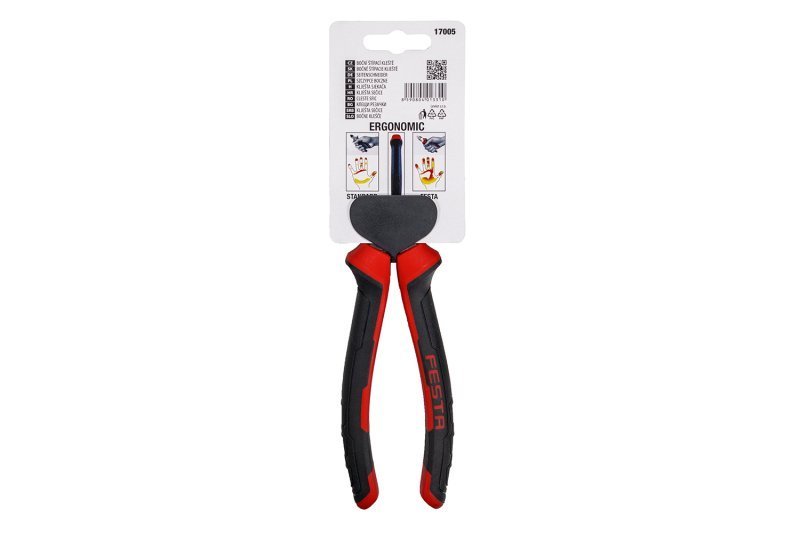 Boční štípací kleště FESTA, ergonomické rukojeti s certifikací pro práci do 1000 V, antikorozní úprava, výrobce je držitelem certifikátu ISO 9001, blistr.