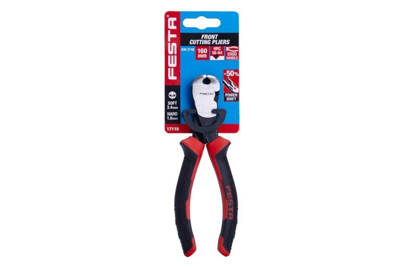 Čelní štípací kleště FESTA, kvalitní uhlíková ocel, ergonomické rukojeti s certifikací pro práci do 1000 V, antikorozní úprava, výrobce je držitelem certifikátu ISO 9001, blistr.