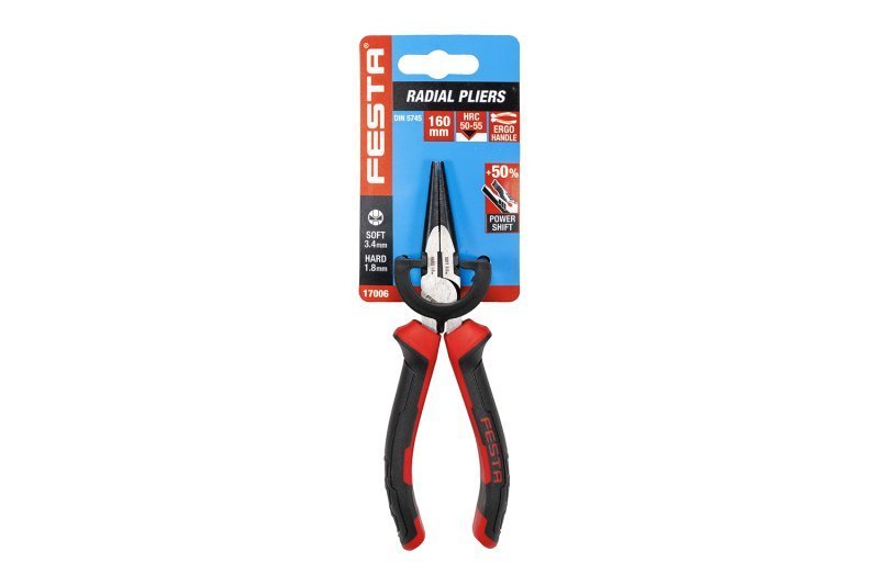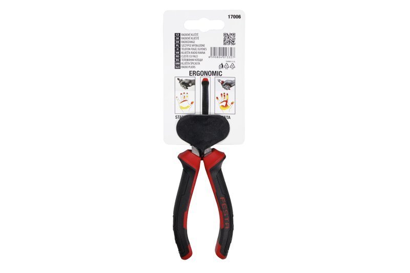 kvalitní radiové kleště FESTA uhlíková ocel, čelisti indukčně kalené tvrdost 50 - 55 HRC s antikorozní úpravou ergonomické dvoukomponentní měkčené rukojeti, při úchopu a stisku o 30% více kontaktu s rukojetí - redukuje množství potřebné síly výrobce je držitelem certifikátu ISO 90001