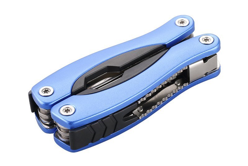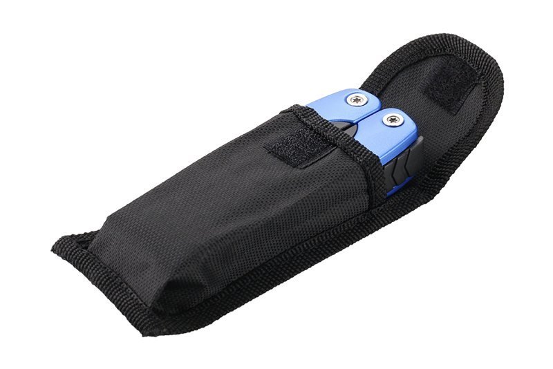 multifunkční kapesní nástroj 9 funkcí kleště, nůž - čepel 55mm, pilka - ostří 55mm, pilník, šroubováky PH1 a plochý 4 a 2 mm, otvírák na konzervy, otvírák na lahve, nástroj pro rybáře s měřítkem 5 cm/2" nylonové pouzdro s poutkem na opasek