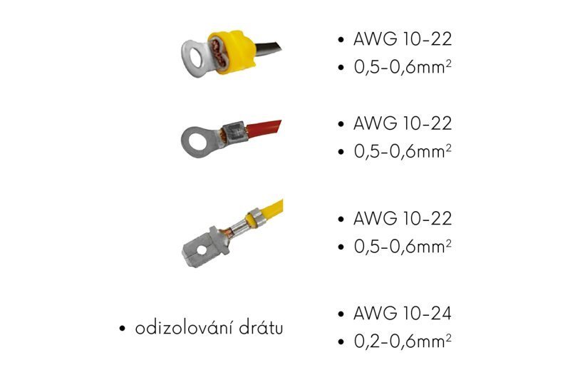 v rukojeti integrované čelisti na lisování / klrimpování koncovek - IZOLOVANÉ i NEIZOLOVANÉ v rozsahu 0.5 - 6.0 mm (AWG 10-22)