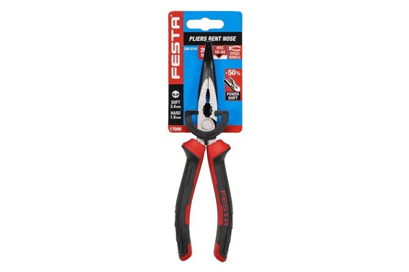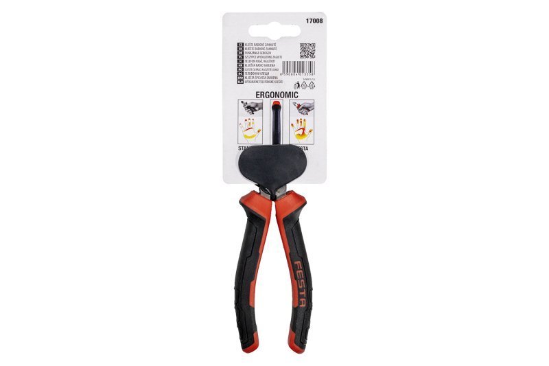 kvalitní radiové zahnuté kleště FESTA uhlíková ocel, čelisti indukčně kalené tvrdost 50 - 55 HRC s antikorozní úpravou ergonomické dvoukomponentní měkčené rukojeti, při úchopu a stisku o 30% více kontaktu s rukojetí - redukuje množství potřebné síly tenké a zahnuté čelisti pro hůře přístupná místa výrobce je držitelem certifikátu ISO 90001