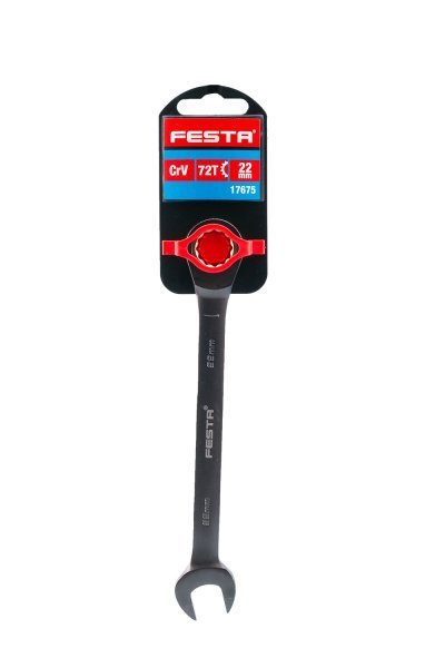 ráčnové klíče FESTA jsou vyrobeny kováním z kvalitní chromvanadiové oceli ocel povrchově upravená matným tvrdochromem pro dosažení optimální povrchové tvrdosti a odolnosti vůči korozivním vlivům rohatku ráčny klíče tvoří 72 kalených zubů, záběr po 5-ti obloukových stupních kvalita, tvrdost a přesnost klíčů odpovídá normě DIN/ISO