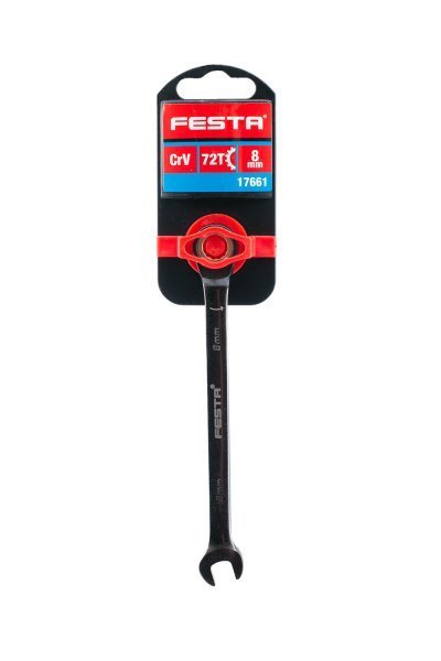 ráčnové klíče FESTA jsou vyrobeny kováním z kvalitní chromvanadiové oceli ocel povrchově upravená matným tvrdochromem pro dosažení optimální povrchové tvrdosti a odolnosti vůči korozivním vlivům rohatku ráčny klíče tvoří 72 kalených zubů, záběr po 5-ti obloukových stupních kvalita, tvrdost a přesnost klíčů odpovídá normě DIN/ISO