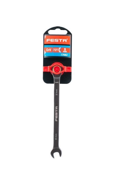 ráčnové klíče FESTA jsou vyrobeny kováním z kvalitní chromvanadiové oceli ocel povrchově upravená matným tvrdochromem pro dosažení optimální povrchové tvrdosti a odolnosti vůči korozivním vlivům rohatku ráčny klíče tvoří 72 kalených zubů, záběr po 5-ti obloukových stupních kvalita, tvrdost a přesnost klíčů odpovídá normě DIN/ISO