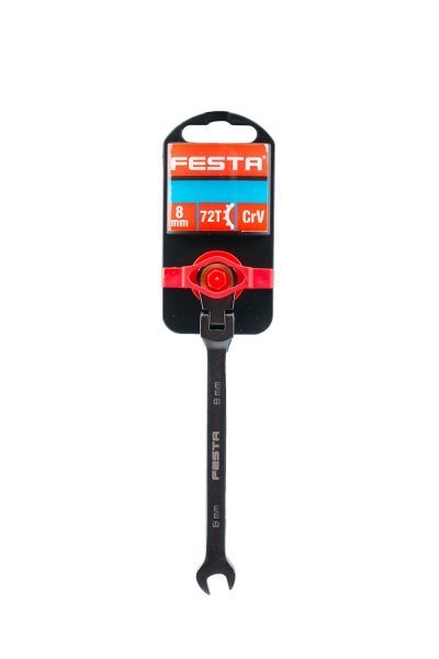 Ráčnové klíče FESTA s kloubem pro použití pod úhlem s výhodou rohatky (ráčny) jsou vyrobeny kováním z kvalitní chromvanadiové oceli. Tato ocel povrchově upravená matným tvrdochromem pro dosažení optimální povrchové tvrdosti a odolnosti vůči korozivním vlivům. Rohatku ráčny klíče tvoří 72 kalených zubů, záběr po 5-ti obloukových stupních. Kvalitou, tvrdostí a přesností přesně odpovídají normě DIN/ISO.
