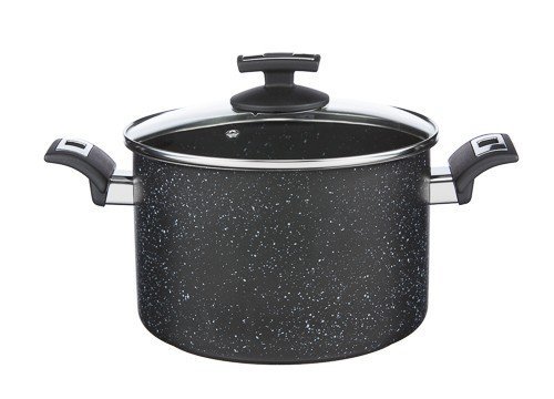 Nádobí BLACK GRANITEC od českého výrobce. Vzhled černo-šedého granitu ozdobí vaši kuchyni. Masivní nádobí s nepřilnavým povrchem který je vyztužený keramickými částicemi.