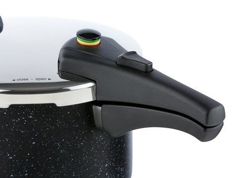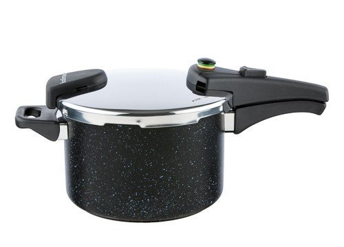 Tlakový hrnec z nerezavějící oceli BLACK GRANITEC s oboustranným nepřilnavým povrchem se vyznačuje snadnou obsluhou, jednoduchou údržbou a dlouhou životností.