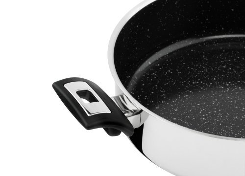 - pánev má široký odlévací okraj pro snadné přelévání bez ukapávání a zašpinění nádoby