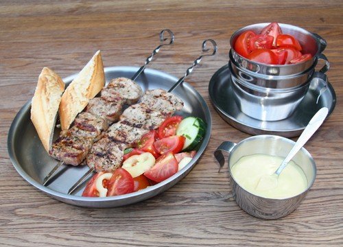 Každý zná tu otravu, když se mu při grilování otáčí na grilovací jehle napíchané potraviny - jedna strana je spálená a druhá nedodělaná. Tento nedostatek běžně dostupných jehel jsme odstranili tím, že je vyrábíme z ploché nerezové oceli. Aby se potraviny snadno napichovaly a aby se jehly jednoduše umývaly je jejich povrch vyleštěný do vysokého lesku. Při používání buďte opatrní, hroty jehel jsou velmi ostré.