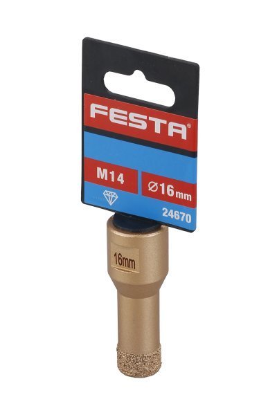 profesionální vykružovací diamantová korunka se závitem M14 - pro úhlové brusky pro "suché" přesné a rychlé vrtání do kamene, dlažby, obkladů, žuly, mramoru a jiných extrémně tvrdých materiálů nejen ve stavebnictví výška vrstvy diamantu 10 mm, dlouhá životnost bez nutnosti použít jakýkoli pomocný nástroj vykroužíte přesný otvor na požadovaném místě doporučený pracovní postup - našroubujte korunku přímo na závit hlavy úhlové brusky, pevně dotáhněte, vykružovat požadovaný otvor začněte pod úhlem 45 °, korunka a rychlost brusky okamžitě zajistí uchycení v požadovaném místě, pomalu při rovnoměrně vytvořeném tlaku narovnejte směr vykružování do svislé polohy. Menší průměry 6 - 14 mm jsou u vrtání do tvrdých dlažeb. Mezi jednotlivými vrty ZCHLADIT - stačí ponořit do sklenice s vodou nebo nechat v otáčkách ochladit vzduchem! Instruktážní video