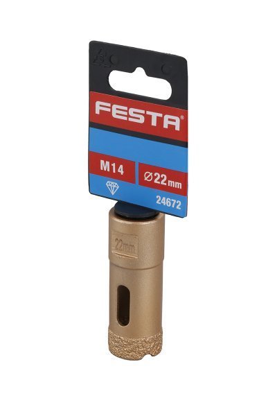 profesionální vykružovací diamantová korunka se závitem M14 - pro úhlové brusky pro "suché" přesné a rychlé vrtání do kamene, dlažby, obkladů, žuly, mramoru a jiných extrémně tvrdých materiálů nejen ve stavebnictví výška vrstvy diamantu 10 mm, dlouhá životnost bez nutnosti použít jakýkoli pomocný nástroj vykroužíte přesný otvor na požadovaném místě doporučený pracovní postup - našroubujte korunku přímo na závit hlavy úhlové brusky, pevně dotáhněte, vykružovat požadovaný otvor začněte pod úhlem 45 °, korunka a rychlost brusky okamžitě zajistí uchycení v požadovaném místě, pomalu při rovnoměrně vytvořeném tlaku narovnejte směr vykružování do svislé polohy, menší průměry 6 - 14 mm je u vrtání do tvrdých dlažeb. Mezi jednotlivými vrty ZCHLADIT - stačí ponořit do sklenice s vodou nebo nechat v otáčkách ochladit vzduchem! Instruktážní video