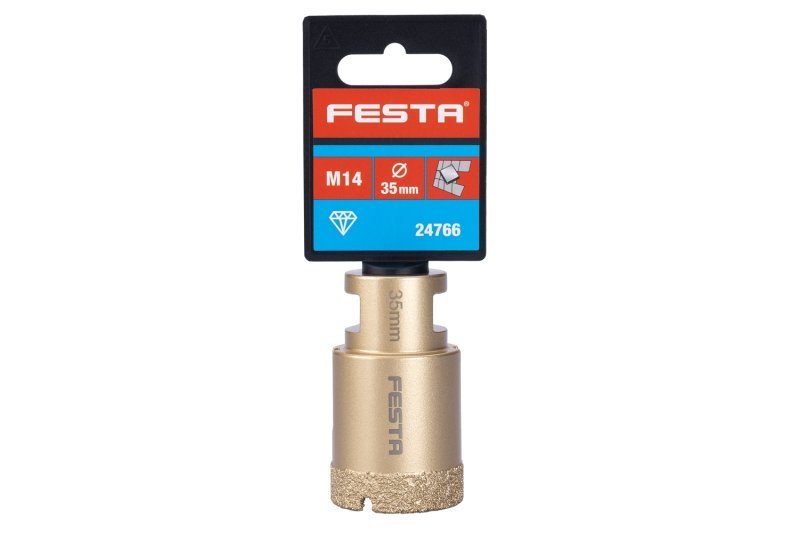 profesionální vykružovací diamantová korunka se závitem M14 - pro úhlové brusky pro "suché" přesné a rychlé vrtání do kamene, dlažby, obkladů, žuly, mramoru a jiných extrémně tvrdých materiálů nejen ve stavebnictví výška vrstvy diamantu 10 mm, dlouhá životnost bez nutnosti použít jakýkoli pomocný nástroj vykroužíte přesný otvor na požadovaném místě doporučený pracovní postup - našroubujte korunku přímo na závit hlavy úhlové brusky, pevně dotáhněte, vykružovat požadovaný otvor začněte pod úhlem 45 °, korunka a rychlost brusky okamžitě zajistí uchycení v požadovaném místě, pomalu při rovnoměrně vytvořeném tlaku narovnejte směr vykružování do svislé polohy, menší průměry 6 - 14 cm je u vrtání do tvrdých dlažeb, mezi jednotlivými vrty, ZCHLADIT - stačí ponořit do sklenice s vodou nebo nechat v otáčkách ochladit vzduchem! Instruktážní video
