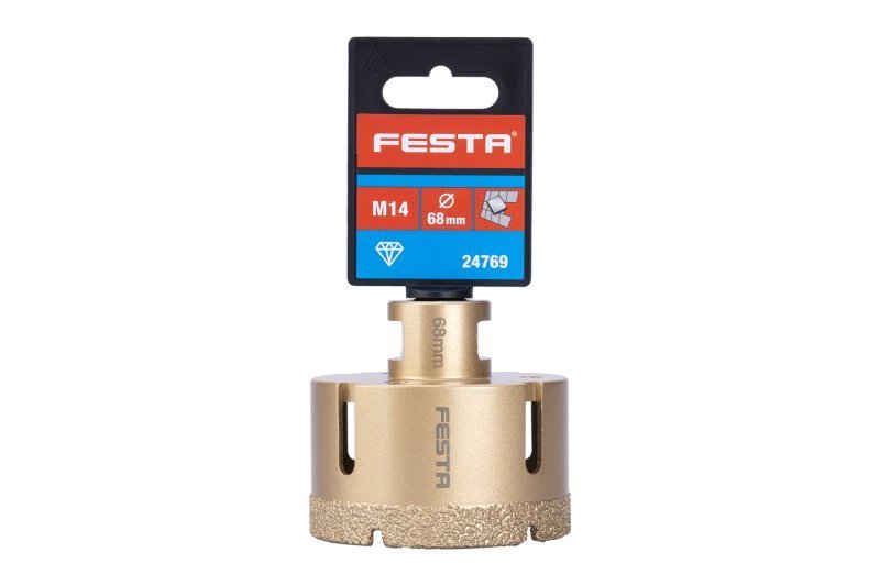 profesionální vykružovací diamantová korunka se závitem M14 - pro úhlové brusky pro "suché" přesné a rychlé vrtání do kamene, dlažby, obkladů, žuly, mramoru a jiných extrémně tvrdých materiálů nejen ve stavebnictví výška vrstvy diamantu 10 mm, dlouhá životnost bez nutnosti použít jakýkoli pomocný nástroj vykroužíte přesný otvor na požadovaném místě doporučený pracovní postup - našroubujte korunku přímo na závit hlavy úhlové brusky, pevně dotáhněte, vykružovat požadovaný otvor začněte pod úhlem 45 °, korunka a rychlost brusky okamžitě zajistí uchycení v požadovaném místě, pomalu při rovnoměrně vytvořeném tlaku narovnejte směr vykružování do svislé polohy, menší průměry 6 - 14 cm je u vrtání do tvrdých dlažeb, mezi jednotlivými vrty, ZCHLADIT - stačí ponořit do sklenice s vodou nebo nechat v otáčkách ochladit vzduchem! Instruktážní video