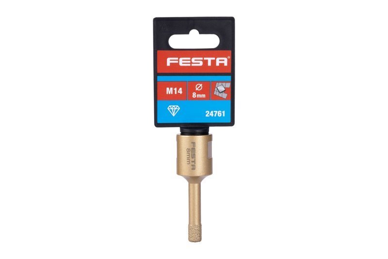 profesionální vykružovací diamantová korunka se závitem M14 - pro úhlové brusky pro "suché" přesné a rychlé vrtání do kamene, dlažby, obkladů, žuly, mramoru a jiných extrémně tvrdých materiálů nejen ve stavebnictví výška vrstvy diamantu 10 mm, dlouhá životnost bez nutnosti použít jakýkoli pomocný nástroj vykroužíte přesný otvor na požadovaném místě doporučený pracovní postup - našroubujte korunku přímo na závit hlavy úhlové brusky, pevně dotáhněte, vykružovat požadovaný otvor začněte pod úhlem 45 °, korunka a rychlost brusky okamžitě zajistí uchycení v požadovaném místě, pomalu při rovnoměrně vytvořeném tlaku narovnejte směr vykružování do svislé polohy, menší průměry 6 - 14 cm je u vrtání do tvrdých dlažeb, mezi jednotlivými vrty, ZCHLADIT - stačí ponořit do sklenice s vodou nebo nechat v otáčkách ochladit vzduchem! Instruktážní video