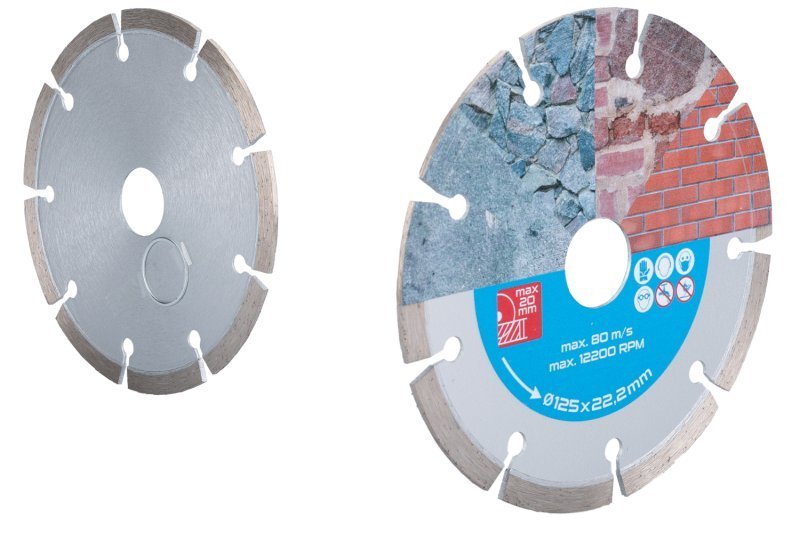 Diamantový kotouč DIAMANT, určený pro suché řezání betonu, cihel, zdiva, kamene, vysoce pevné uchycení diamantových segmentů k nosnému disku kotouče, vysoký obsah diamantového prachu, průměr otvoru 22,2 mm. Součástí balení je redukční kroužek z 22,2 na 20 mm.