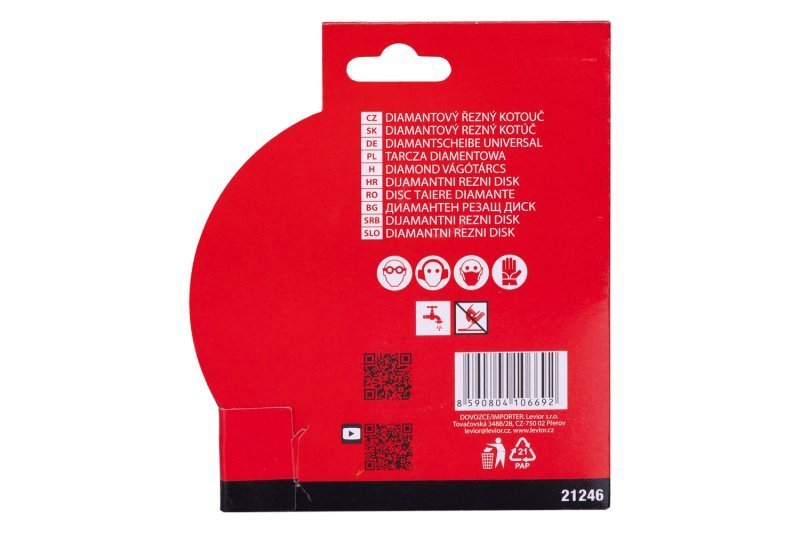 rychlý a čistý řez, kotouč je vhodný pro řezání tvrdých glazovaných dlažeb a obkladů, gresu, keramiky, porcelánu, apod.