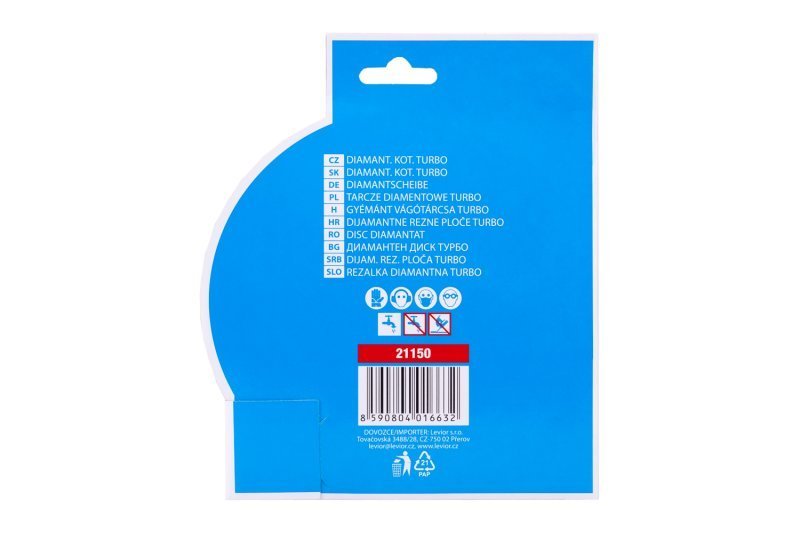 Diamantový kotouč DIAMANT turbo, určený pro suché řezání betonu, cihel, zdiva, kamene, vysoce efektivní řezání a rychlé díky speciální konstrukci pevně uchycených diamantových segmentů k nosnému disku kotouče, vysoký obsah diamantového prachu, průměr otvoru 22,2 mm. Součástí balení je redukční kroužek z 22,2 na 20 mm.
