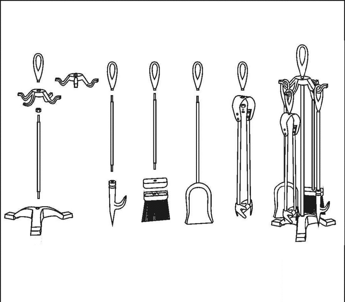 Sada obsahuje držiak, lopatku, metlička, kliešte, kutáč.