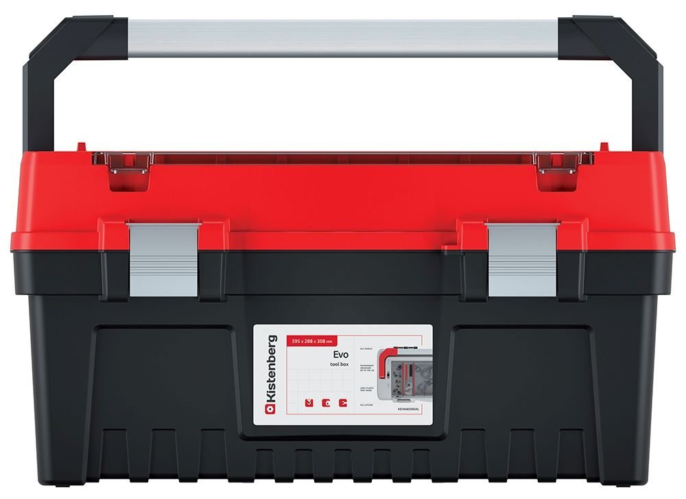 Kufr na nářadí s kov. držadlem a zámky EVO 594x288x308 mm (přepážky) - barva: červená