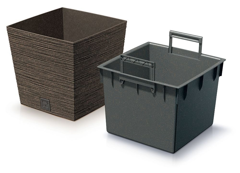 Květináč FURU SQUARE LOW ECO WOOD s vkladem 29,5 cm - barva: káva ECO