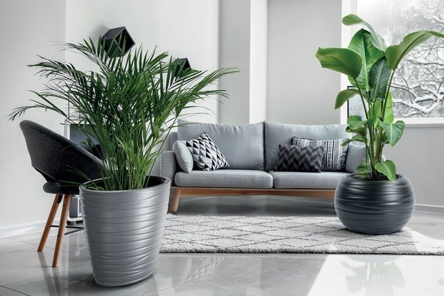 Květináč MAZE kulatý s vkladem 39,6 cm - barva: antracit