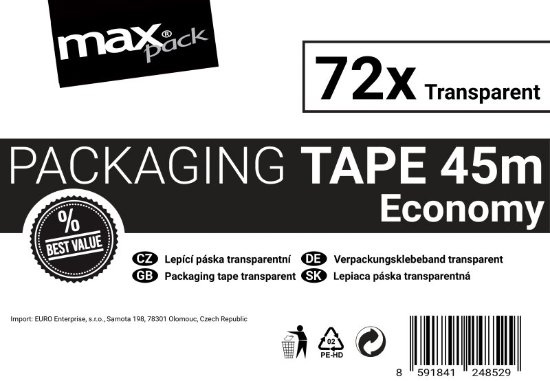 Maxpack univerzálna lepiaca páska je nepostrádateľným pomocníkom v každej domácnosti, kancelárii i sklade. Vďaka silnej adhézii a kvalitnému akrylovému lepidlu zaistí pevné a trvanlivé spojenie na širokej škále materiálov. Ideálne na balenie zásielok, spevňovanie kartónov i bežné opravy.