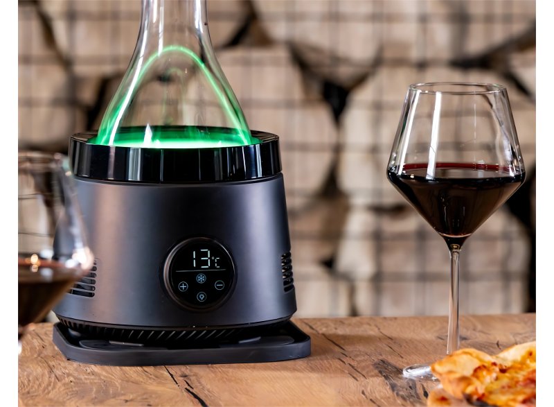 Stačí víno vopred vychladiť, vložiť do nádoby, nastaviť požadovanú teplotu a už iba relaxovať. Intuitívne dotykové ovládanie, ambientné LED osvetlenie a nízka spotreba energie (60 W) robia z tohto zariadenia ideálny doplnok pre každého milovníka vína.