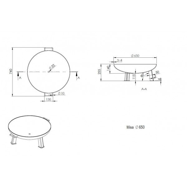 Unikátní otevřené ohniště z kvalitní kotlové oceli. Skvělá součást každé zahrady, dvora i terasy. Díky své konstrukci se snadno přenáší a čistí. Vychutnejte si neopakovatelnou atmosféru otevřeného ohně při zachování maximálního bezpečí.•Použití: dvůr, zahrada, terasa, balkón•Materiál: kovová ocel 4mm•Povrch: vnější strana lakovaná černou kovářskou barvou, uprostřed otvor pro odtok dešťové vody•Hmotnost: 15,2 kg•Rozměry: 650 x 255 (viz tech. nákres)