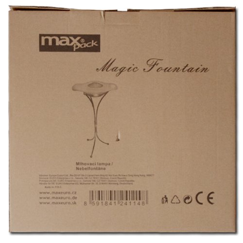 Fontána mlhová bílá je stojací lampa která automaticky mění barvy podsvícení na modrá, oranžová, červená, fialová a vyrábí mlhu. Mlhovací zařízení funguje na bázi ionizátoru. Fontána mlhová slouží i jako zvlhčovač suchého prostředí, do lampy je možno přidat pár kapek esenciálního oleje. Fontána mlhovací má rozměry ve složeném stavu 85x43cm. Fontána je napájena do zásuvky přes transformátor 220V na 24V.Transformátor je součástí balení. ilustrační foto