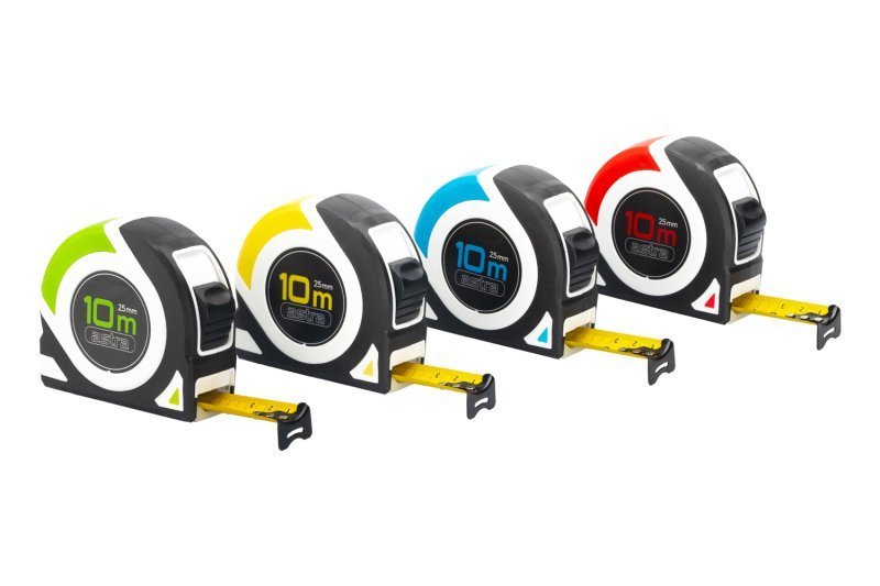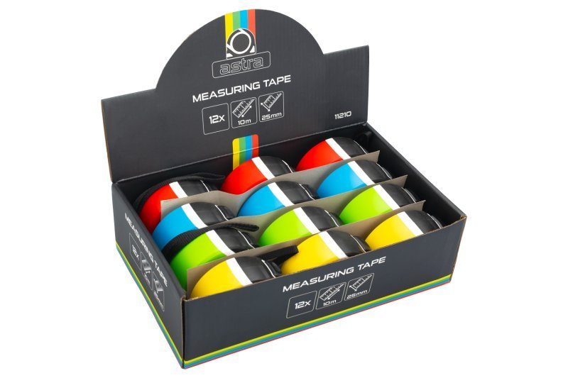 metr svinovací v prodejním boxu - provedení v moderních pastelových barvách