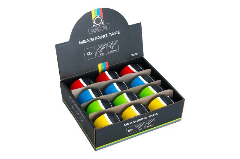 metr svinovací v prodejním boxu - provedení v moderních pastelových barvách