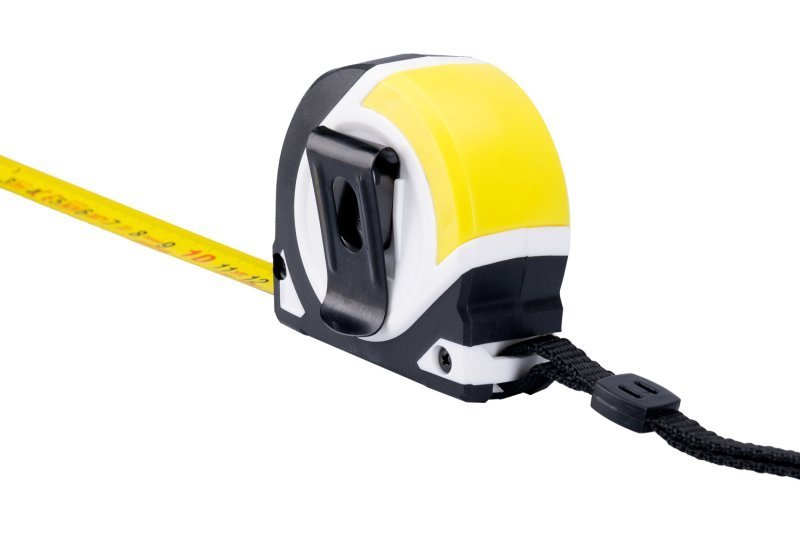 dvoukomponentní pouzdro metru - kvalitní plast v kombinaci s gumou - ochrana proti rozbití při pádu, poutko, klip na opasek