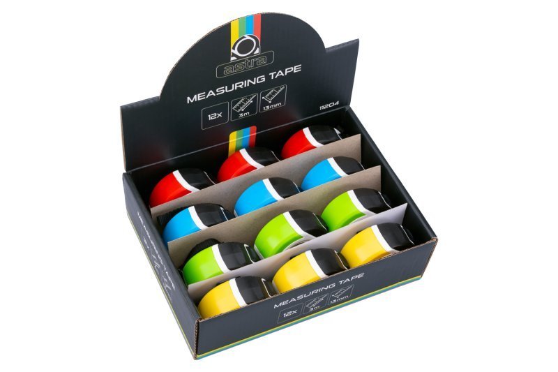 metr svinovací v prodejním boxu - provedení v moderních pastelových barvách