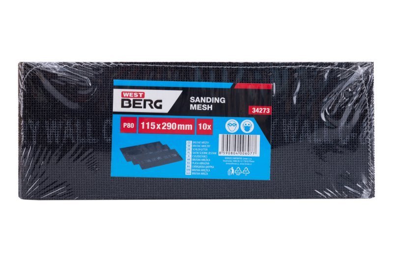 Brusná mřížka 115 x 290 mm, zrn.80, 10ks/sada. Hmotnost 0,220 kg. Brousicí mřížka je konstruována tak, že na nosnou tkaninu ze skelných vláken jsou pryskyřicí přilepena brousicí zrna karbidu křemíku. Výhoda mřížkové struktury proti běžným brousicím papírům spočívá v tom, že se nezanáší odbroušeným materiálem.