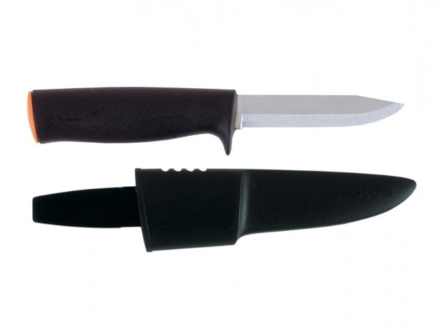 Velmi ostrý nůž bezpečně uložený v plastovém závěsném pouzdře. Čepel je vyrobena z nerezové švédské oceli a ergonomicky tvarovaná rukojeť chrání proti sklouznutí ruky. Délka čepele: 100 mm, délka rukojeti: 215 mm, hmotnost: 69 g. Původní Fiskars číslo: 125860.
