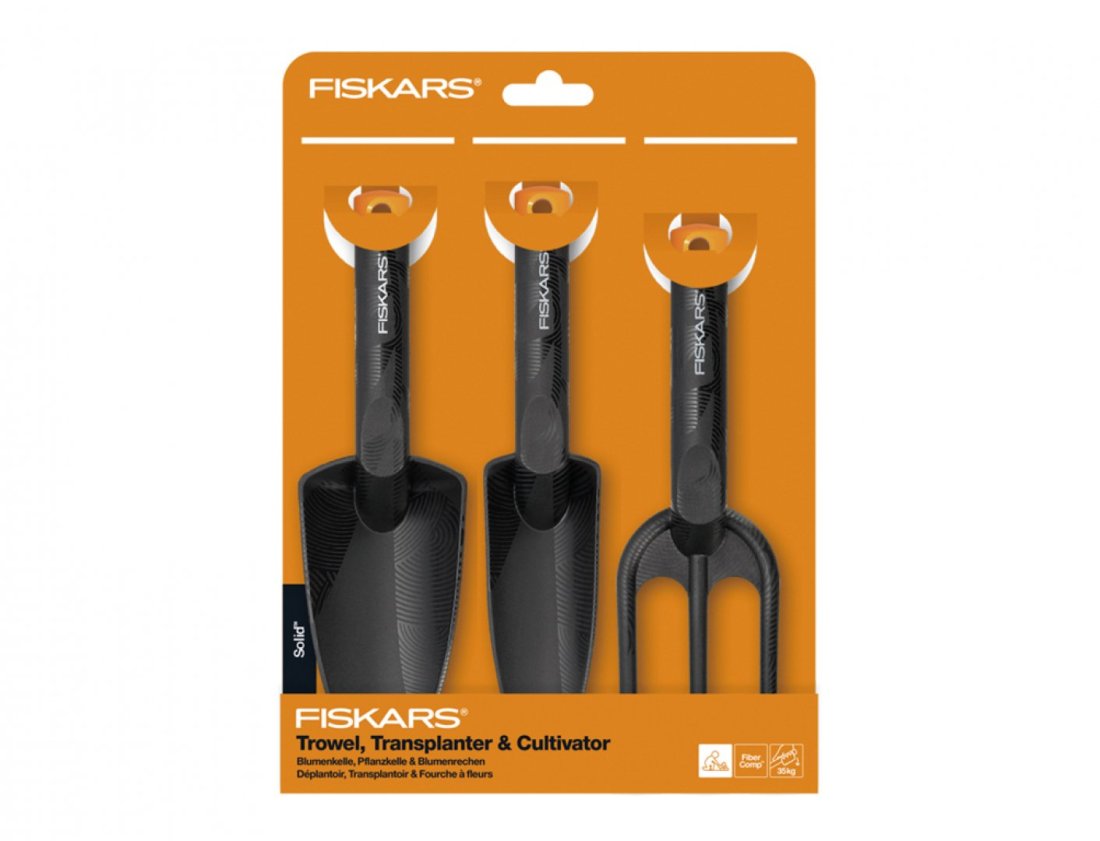 Praktická sada drobného nářadí. Všechny nástroje sady jsou vyrobeny z odolného a korozivzdorného materiálu FiberComp a mají závěsný otvor pro snadné skladování. Každý uzvedne až 35kg. Sada obsahuje: Lopatku Solid, ideální k sázení a přesazování. Lopatku Solid přesazovací, ideální pro přesazování a pletí, vhodná k použití na úzkých záhonech a v truhlících na balkónech. Kultivátor Solid malý, ideální pro provzdušňování a kypření půdy.