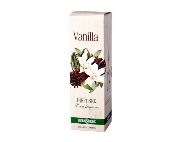 Stylová skleněná nádobka s dřevěným uzávěrem a čtyřmi tyčinkami. Obsahuje vodný roztok nasycený svěží a exkluzivní vůní. Vůně je postupně uvolňována odpařováním přes namočené dřevěné tyčinky. Dlouhotrvající účinek je závislý na teplotě a intenzitě větrání v dané místnosti. Vůně: vanilka.