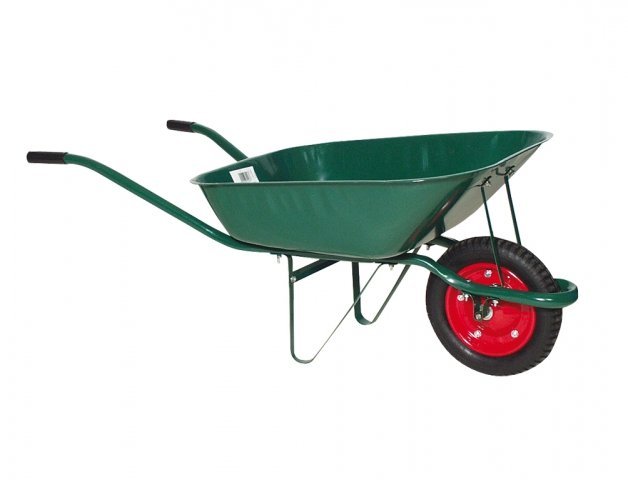 Zahradnické kolečko má nosnost 80 kg a objem 60 litrů. Barva: zelená.