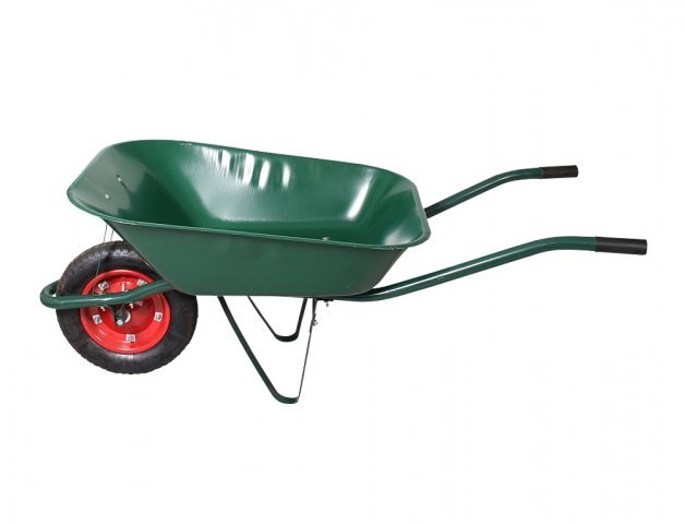 Zahradní kolečko má nosnost 100 kg a objem 100 l. Barva: zelená.